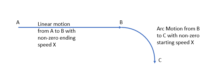 Ending speed > 0 can be used to connect multiple motion commands seamlessly (see below)